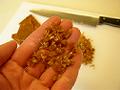 冷めれば刻む。クリームの中に入れて使うので、口に入れた時の食感を考えて刻む大きさを決める。
