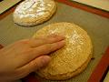 すぐにシルパット(もしくはオーブンペーパー)に出して挟み、薄く延ばす。