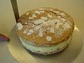 型をまっすぐ上にはずしてアーモンドをのせ、粉砂糖を振る。