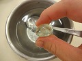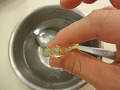 一部をスプーンですくって氷水に入れると丸めれる。