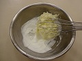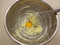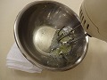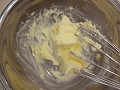 バターを泡だて器で混ぜて、なめらかでダマのない状態にする。