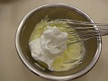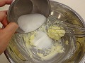 柔らかくしたバターに半分のメレンゲを加え、ツヤが出るまで混ぜる。