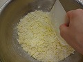 粉気がなくなってきたら、カードで生地をボールに擦り付けるようにする。