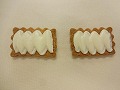 平らな口金を付けた絞り出し袋に、バタークリームを入れてサブレに絞る。