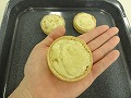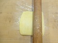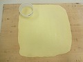 型が直径6cmなので2cm大きい8cmの抜型で4個の4列とれる大きさで、厚さ約2mmに伸ばす。