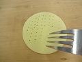直径8cmの円形に抜いてフォークなどで穴を開ける。