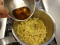 炒めたりんご(ノルマンディー風)をザルにあけて水分を切る。