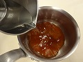 鍋にアプリコットジャムを入れ、ジャムの約1割の水を加える。