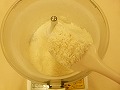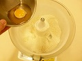 薄力粉をふるってフードプロセッサーに入れ、塩を加える。