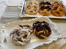 | ドイツ語でブレーツェル。パン生地でつくる塩味のものもありますが、ここでは二種類のパイ生地を重ね合わせて、伝統的な形のお菓子にしています。生地がしっかり冷えた状態で、プレッツェルの形にしていきましょう。 |