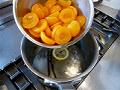 沸騰したら、缶詰の汁気を切ったアプリコットを加える。
