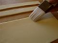 縁の部分に、ドリュールを刷毛で塗る。