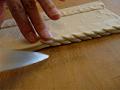 包丁の背を使って、生地の側面に切り込みを入れる。