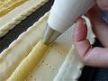 帯生地の間に、均一になるように絞ってクリームを詰める。