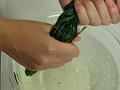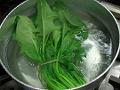 急激に冷やすことで、緑色が保たれます。少し食べてみて、アクが強ければ、水にさらしましょう。