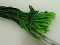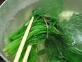 こうすると軸の部分も葉の部分も同時にゆで上がります。