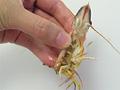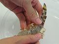 クルマエビは、えさと一緒に砂を食べていることがあるので背わたを取り除きましょう。冷凍のエビの背わたはちぎれやすいので竹串で取り除きましょう。