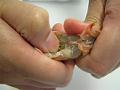 腹側は殻が柔らかいので、腹側からむきましょう。