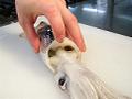 内臓(わた)を傷つけないよう、目の上あたりから、切り離す。