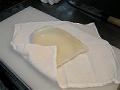 胴の内臓の薄皮を、布巾できれいにこすり取る。
