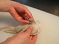 胴の中に指を入れ、胴と内臓をつなぐ筋を指ではずす。