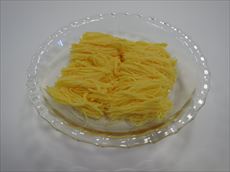 薄焼き玉子の事を錦紙玉子と呼び、それをせん切りにしたものは錦糸玉子です。読み方は同じ『きんしたまご』です。
