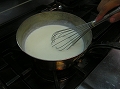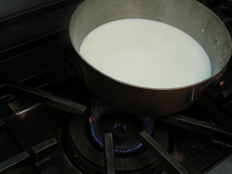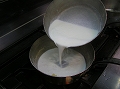 温めておいた牛乳を一度に加える。