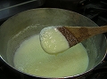 最初に粉を入れた時は、温度が下がってどろりとした状態になるが、やがて全体にぼそぼそと沸き立つようになる。