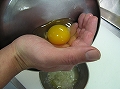 卵を浅い小皿などに1個ずつ割り入れ、水溶性卵白だけを取り除く。