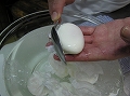 ゆでる時に水溶性卵白が浮遊して、湯が濁らないようにするためです。水溶性卵白は、卵白の一番外側にある水っぽくさらさらしている部分のことです。