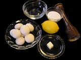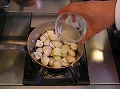 鍋にシャンピニョンを入れ、レモン汁、バターを加え、水をシャンピニョンが半分つかるくらい注ぐ。