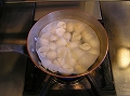 塩、こしょうし、紙蓋をして沸騰させ、2〜3分ゆでたら出来上がり。使う時までゆで汁に浸けたままにしておく。