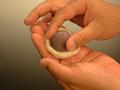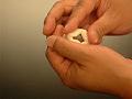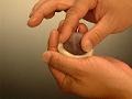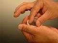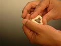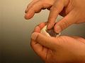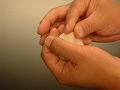 三角形の角を押さえ、均一に力を加え、のばす。