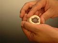 握り込むことにより、生地の口が小さくなり、球形になります。