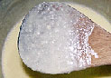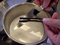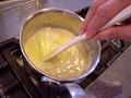 牛乳を温めた鍋に戻し、よくかき混ぜながら弱火にかける。決して沸騰させないこと。