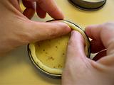 型を回しながら周囲の生地を下から上へ貼り付けていき、冷蔵庫で約30分冷やす。