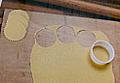 伸ばした生地を型の大きさに合わせて、抜き型で抜く。