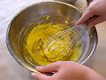 卵と卵黄を混ぜ合わせたものを3回くらいに分けて加え混ぜ合わせる。