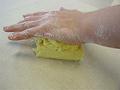 バターの切り口に粉をまぶすようにしながら刻むとよい。