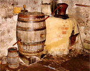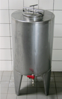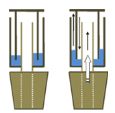 ゲーァシュプント発酵前(左)と発酵途中(右)水色の部分には、水が入っている。
