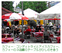 気温の高低に関らず、天気の良い日には、店の前の路上や中庭にもテーブルやイスが並べられる(公共の道路を使う場合には、許可と使用料が必要)。