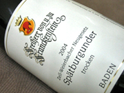 ヴァイスブルグンダー (Weißburgunder)の 表側のラベルに記載された等級は カビネット(Kabinett)で、 味は辛口(Trocken)。