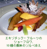 | ●デザート:エキゾチック・フルーツのショーフロワ、10種の風味のソルベ添え |