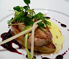 Y:艶やかで深みのあるエルミタージュと、力強くしかも包容力のあるコート・ロティ、頑固親父みたいな雰囲気のコルナス――ま、この三つがローヌのシラーの代表なわけですが、どれも間違いなくジビエにはよく合います。このワインも、単独で飲むと結構いいところに行くんですが、こういう料理と合わせちゃうと、芯の弱さが露呈しちゃって、ちょっと可哀想でしたね。 |