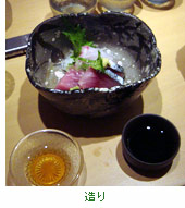 K:やはりちょっと口をうるおすぐらいでも飲んで欲しいですね。お茶ではちょっときつい料理がありますよ。たとえばこのお造りなんかはいくら鮮度がよくてもお茶だと臭みが残ってしまいますから。それにお茶のタンニンと結びつくと苦く感じてしまうものもありますし。