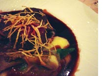 蝦夷鹿のロースト プラム風味の赤ワインソースY:うん、実においしい。これは一転して教科書的な合わせ方ですね。ローヌ地方のワインとジビエの組み合わせはまず外すことはないでしょう。