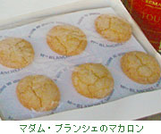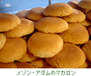 サンテミリオンはブドウ畑に囲まれたワインの村で、ボルドーワインだけでなく、ブドウ畑も含む村の管轄地区が世界遺産になっていることでも有名です。村を歩いていると、あちこちでマカロンとカヌレが売られています。マカロンは13世紀にウルスラ会の修道女が作ったといわれ、土地柄ソーテルヌなどの甘口ワインを加え、湯煎で温めて作るとか。形は平らでやや小ぶり、ナンシーのマカロン同様表面に亀裂が入っていて、食感は少しねっちりとしています。 [Mme Blanchez] 09, rue Guaget 33330 St.Emilion Tel:05 57 24 72 33
