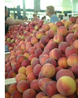 | どの店も、食材を無造作に並べているように見えるのだが、微妙に異なる色合いのフルーツや野菜達に鮮やかな存在感を与えている。マルシェの至るところ、芳しい香りに包まれて、季節感にあふれている。 |