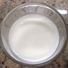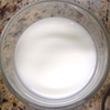 フランス校で毎日実習時に使用している牛乳です。こちらもほんの少し透明感がありますが、白さが強くなっています。日本の牛乳に比べると牛乳臭さは少ないのですが、生乳よりは少し牛乳臭さが出てきています。脂肪分のみとはいえ加熱殺菌していることから来ていると思われます。脂肪分調整後、均質加工されているためか、口の中に入れるとすぐに脂肪の甘みが感じられますが、飲み込んだ後は余韻が長く続かず生乳よりあっさりした印象です。