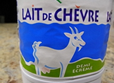 山羊乳です。日本ではほとんどの方が見たこともないと思いますが、こちらでは山積みになって牛乳売り場に置かれています。牛乳好きの人でもこのクセのある山羊乳は好きという人は少ないのではないでしょうか。フランスでは山羊乳を使用したフロマージュ(チーズ)が作られているため、一般の人でもあまり違和感がなく受け入れられているようです。